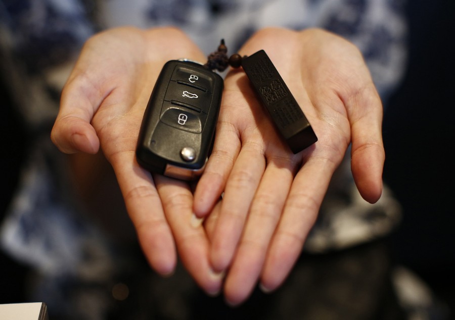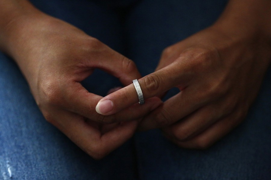 Read moreLiu, whose husband Li Zhijin was aboard flight MH370, tries her husband's ring on her finger as she shows it during an interview in Beijing on July 22, 2014. Liu said she argued with her husband in their last phone call before the incident. She had not realized that it would be their last conversation and now that is her greatest regret. #
