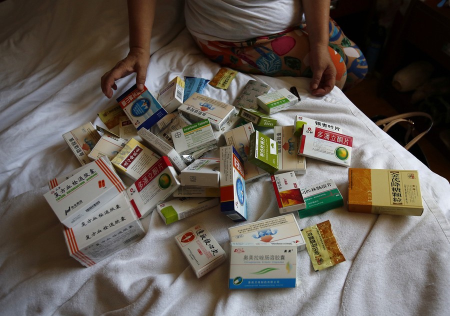 Read moreLi, whose son Wen Yongsheng was aboard flight MH370, shows medicine for herself and her husband which they take every day, during an interview in Beijing on July 11, 2014. Li and her husband, who come from Shandong province, now stay in a small shabby hotel room in Beijing with hopes of finding more accurate information about the incident that took their 34-year-old son. They said the incident makes their health worse and they have to go to hospital every day. #