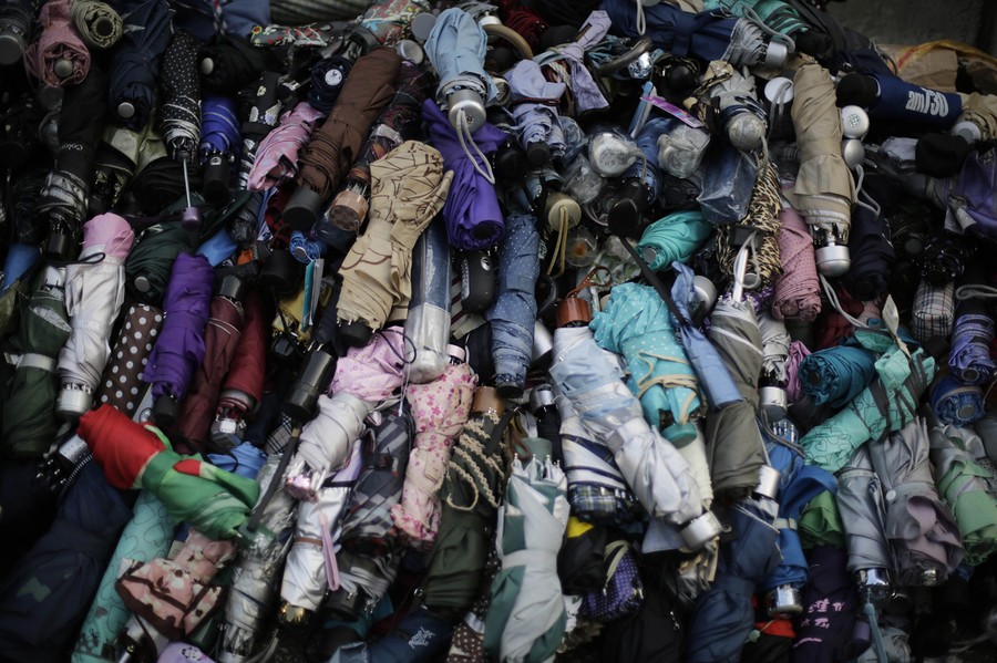 Read moreA protester throws an umbrella at riot police as fellow demonstrators blocked the main street to the financial Central district outside the government headquarters in Hong Kong on September 29, 2014. Some Hong Kong financial firms advised staff to work from home on Monday or go to secondary offices after thousands of pro-democracy demonstrators blocked parts of the city and clashed with police. #