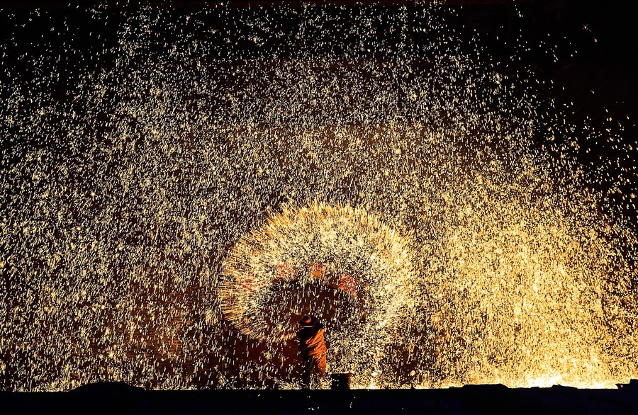 Read moreChinese blacksmiths throw molten metal against a cold stone wall to create sparks on February 23, 2015, in Nuanquan, Hebei Province, China. The throwing of ladles-full of molten iron against brick walls creates a shower of sparks that looks like fireworks. It has been a tradition in Nuanquan Town for more than 300 years, and is believed to have come about because of the many blacksmiths of the town. #
