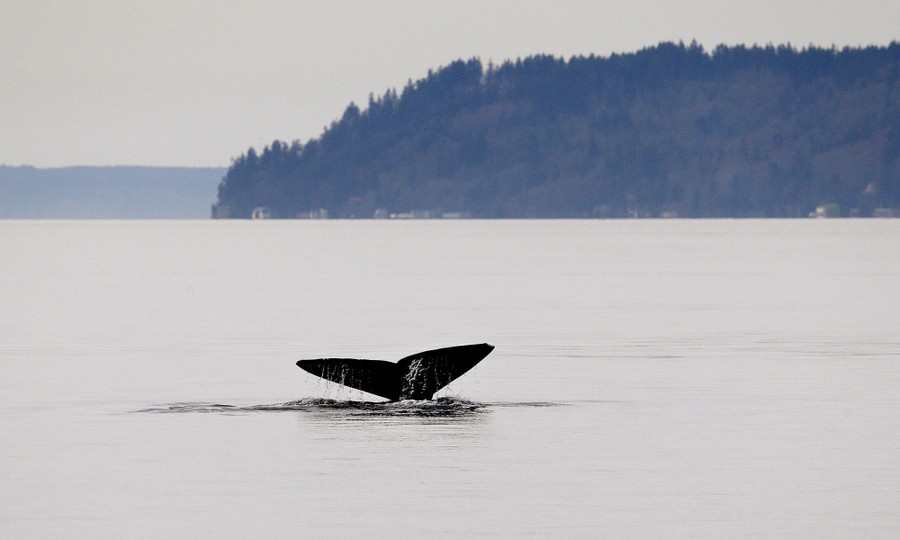 Read moreA gray whale, called "Little Patch" and one of a group known locally as the "Saratoga grays" for a nearby passage the whales favor, shows its massive tail fluke while diving in Possession Sound, near Everett, Washington, on March 13, 2015. Several of the expected 11 whales returned within the past week for what has become an annual feeding event for the small group, a break-off from the spring migration of thousands of the gray whales from the calving lagoons in Mexico to the Bering Sea and then to the waters off Russia. The small group is expected to spend about three months feeding in the waters off the south end of Whidbey Island, Washington, before rejoining the northbound migration in mid-June. #
