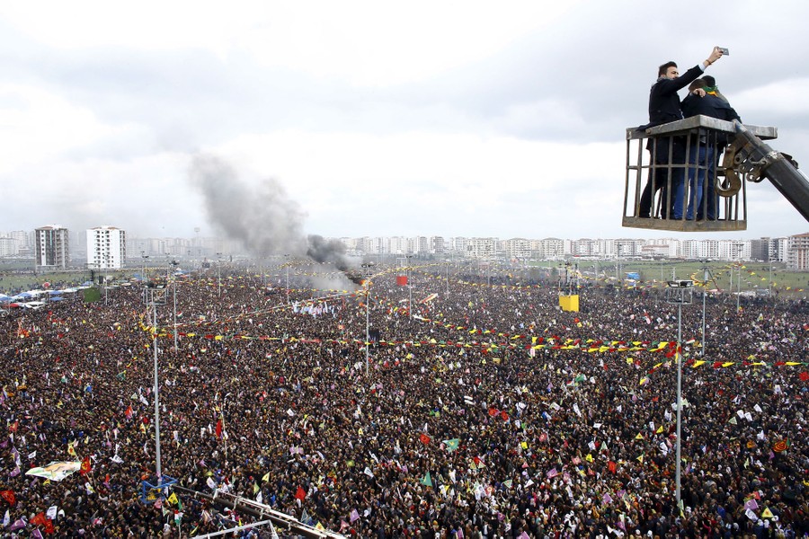 Read moreA man takes a selfie on an aerial lift as tens of thousands of people take part in a gathering celebrating Newroz, which marks the arrival of spring and the new year, in Diyarbakir, Turkey, on March 21, 2015. #