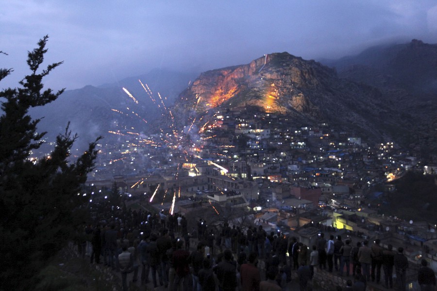 Read moreIraqi Kurdish people carry fire torches up a mountain where a giant flag of Iraq's autonomous Kurdistan region is laid, as they celebrate Newroz Day, a festival marking their spring and New Year, in the town of Akra, on March 20, 2015. #