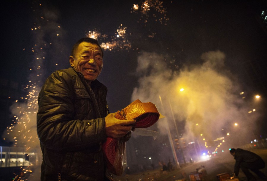 Read moreA Chinese man reacts as firecrackers he lit explode during celebrations of the Lunar New Year early on February 19, 2015, in Beijing, China. The Chinese Lunar New Year of Sheep, also known as the Spring Festival, which is based on the Lunisolar Chinese calendar, is celebrated from the first day of the first month of the lunar year and ends with Lantern Festival on the 15th day. #