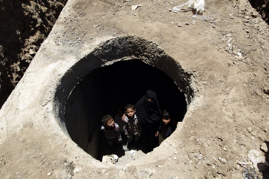Read moreDisplaced Yemenis stand in a man-made underground water tunnel where they are taking shelter after their houses were destroyed by air strikes carried out by the Saudi-led alliance, in the Yemeni capital, Sanaa, on April 29, 2015. #