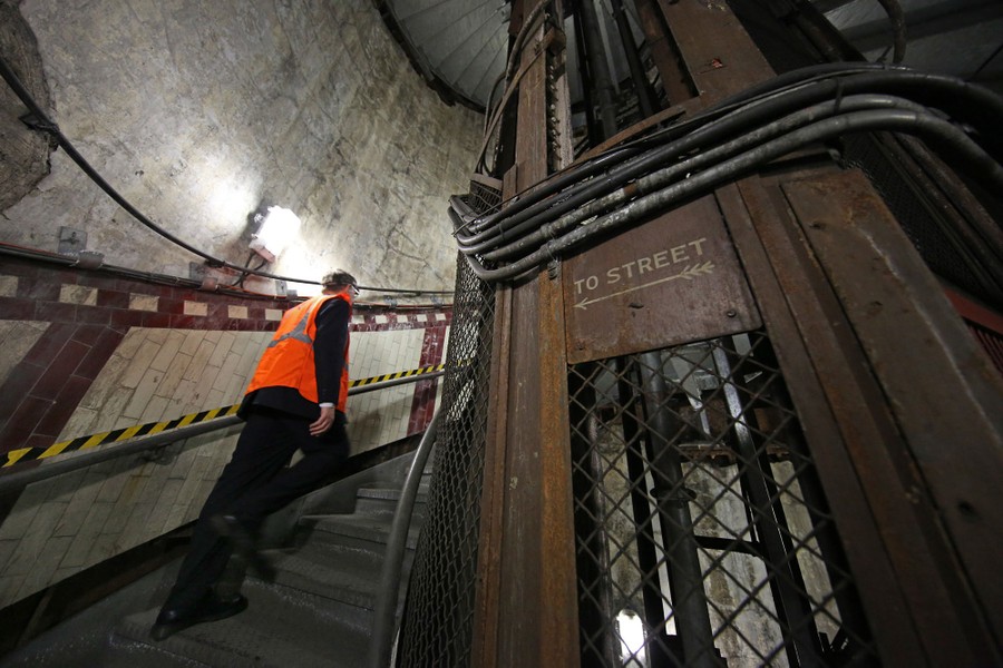 Read moreA worker climbs the exit stairs in the disused Down Street underground station on May 18, 2015, in London, England. The disused underground railway station, which closed in 1932, was used by wartime leader Winston Churchill for some cabinet meetings as his Whitehall bunker was being built. Transport for London are seeking ideas from businesses that may want to lease some of the 400 square meters available at the station. Out of 270 functioning stations in London there are at least 40 overground and underground stations which still exist but are no longer used. #