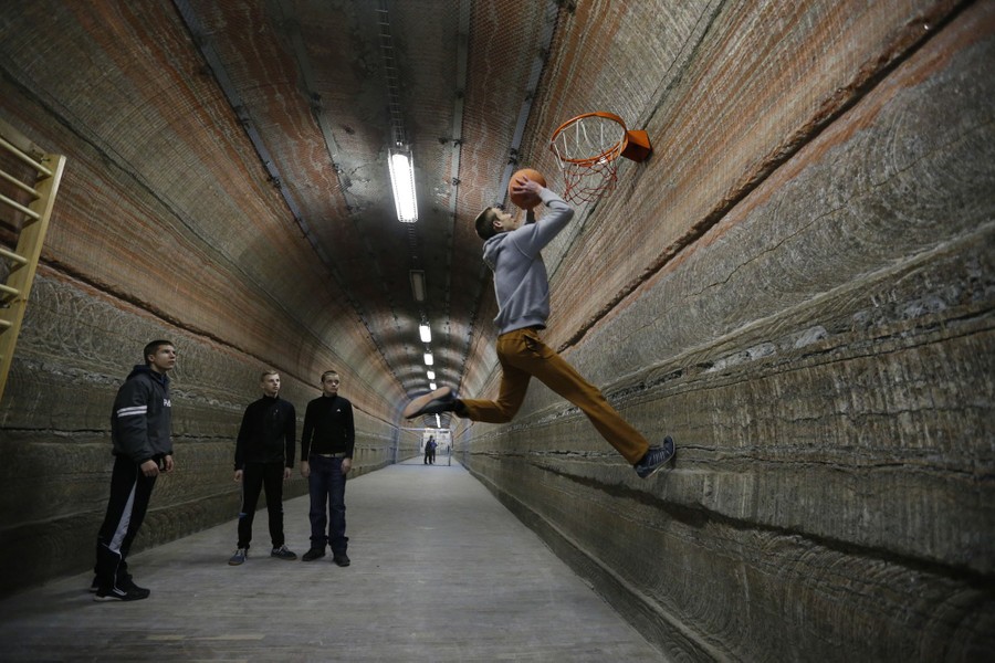 Read moreChildren play in the salt mine at the state republican clinic of speleotherapy near the town of Soligorsk, south of Minsk, on February 19, 2015. More than seven thousand children and adults in a year treat diseases of the respiratory tract in the subsurface chambers, which are located 420 meters underground in the layers of potassium and stone salts in the salt mine. #