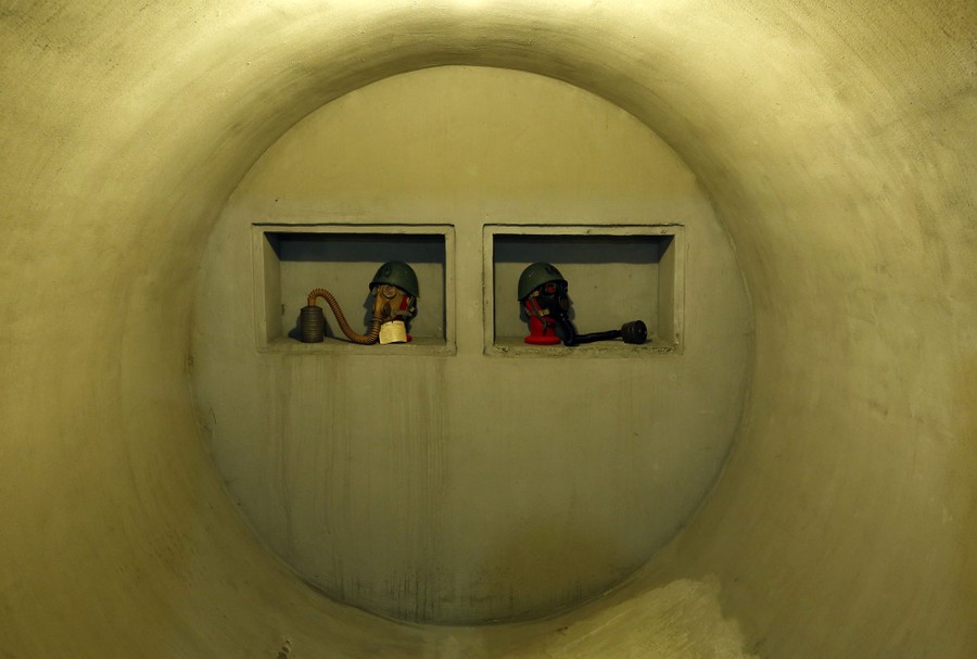 Read moreHelmets and gas maskssit inside a secret bunker of Fascist leader Benito Mussolini that was built between 1942 and 1943 under his private residence at Villa Torlonia in Rome, on October 25, 2014. #