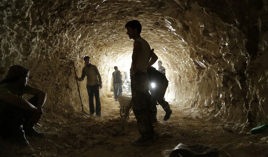 Read moreRebel fighters dig caves in the mountains, to be used as shelters from the bombing of forces loyal to Syria's President Bashar al-Assad, in al-Latamna town, in the northern countryside of Hama, on March 9, 2015. #