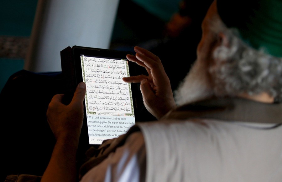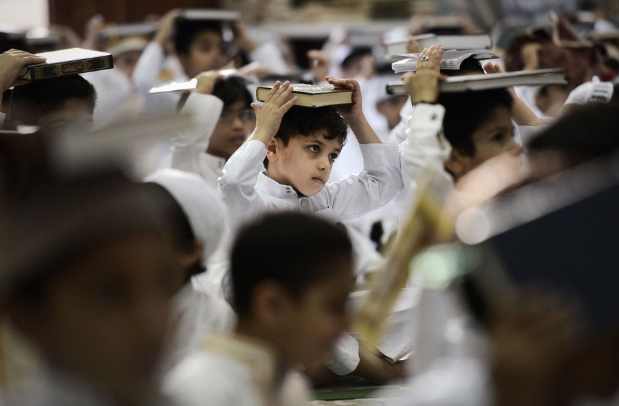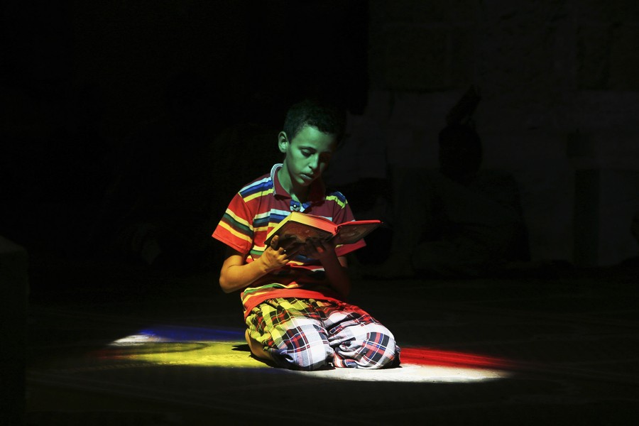 Read moreA Palestinian child recites verses from the Koran, Islam's holy book, as he waits for the noon prayer at a mosque during the holy month of Ramadan in Gaza City in the northern Gaza Strip. #