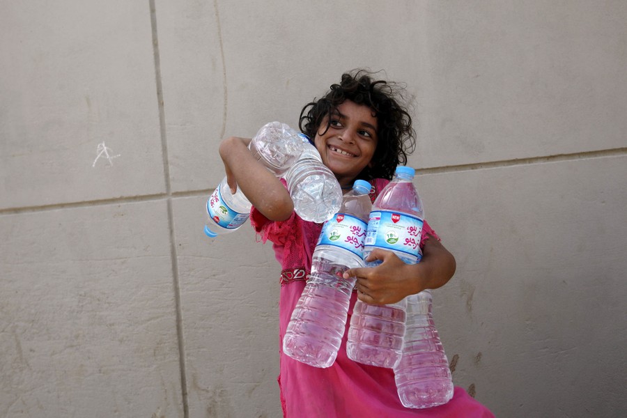 Read moreA girl smiles while holding water bottles she collected from a charity distribution point during a heatwave, outside the emergency department of Jinnah Postgraduate Medical Centre (JPMC) in Karachi, Pakistan, on June 28, 2015. #
