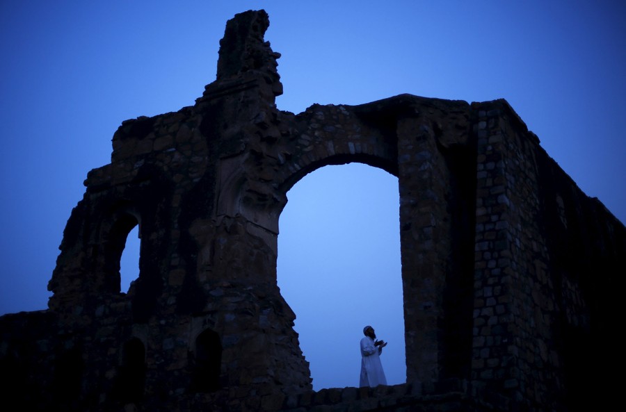 Read moreA Muslim man calls for the evening prayer after having his Iftar (breaking of fast) meal at the ruins of the Feroz Shah Kotla mosque in New Delhi, India, on June 28, 2015. #