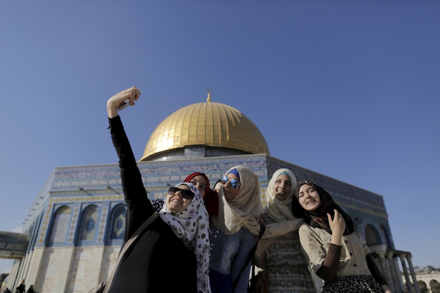 Read morePalestinian Sanaa Abu Jaudi (left), 16, from the West Bank city of Jenin, takes a selfie photo with friends in front of the Dome of the Rock on the compound known to Muslims as Noble Sanctuary and to Jews as Temple Mount in Jerusalem's Old City, during Ramadan, on June 29, 2015. This is Abu Jaudi's third visit to the compound. Palestinians young and old have jumped on a trend for taking selfies at Al-Aqsa, the eighth-century Muslim shrine in Jerusalem, both as a personal memento and for relatives prevented from or unable to visit the ancient compound. #