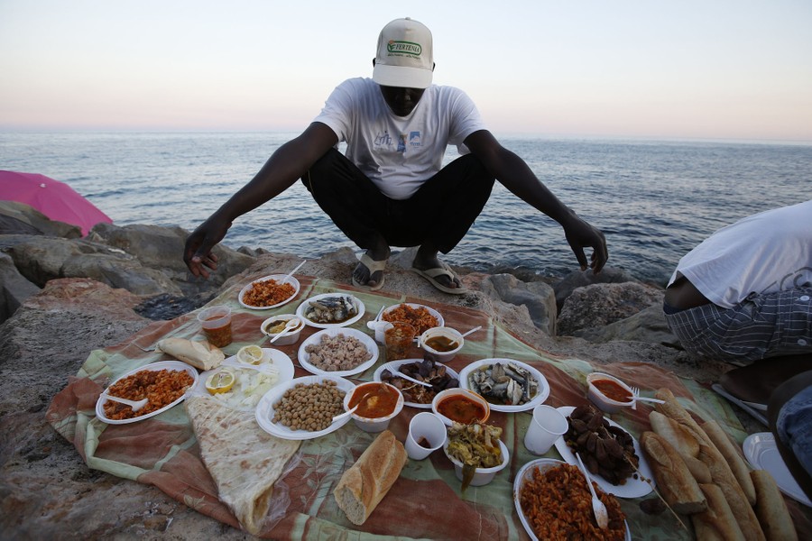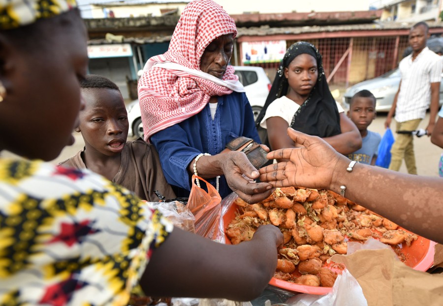 Read moreA vendor bags a local delicacy to take away for Iftar during the Muslim fasting month of Ramadan, outside the Grand Mosque of Koumassi in Abidjan, Ivory Coast, on June 19, 2015. #