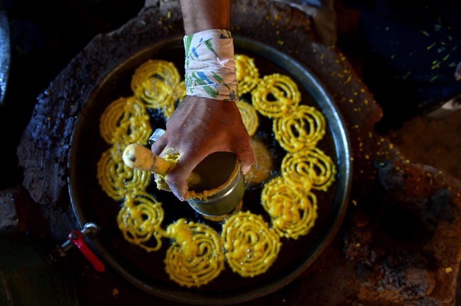 Read moreAn Afghan laborer works at a traditional “jalebi” (sweet) factory during the Islamic holy month of Ramadan in Herat province on June 22, 2015. #