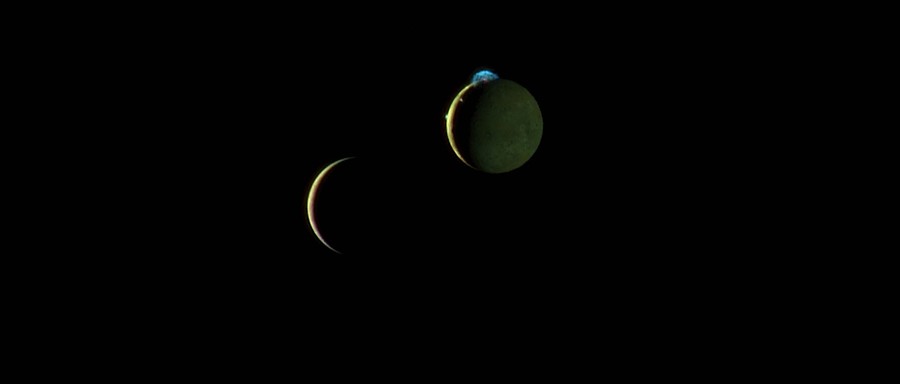 Read moreThis beautiful image of the crescents of volcanic Io and more sedate Europa is a combination of two New Horizons images taken on March 2, 2007, about two days after New Horizons made its closest approach to Jupiter. This image was taken from a range of 2.8 million miles (4.6 million kilometers) from Io and 2.4 million miles (3.8 million kilometers) from Europa. Although the moons appear close together in this view, a gulf of 490,000 miles (790,000 kilometers) separates them. Io’s night side is lit up by light reflected from Jupiter, which is off the frame to the right. Europa's night side is dark, in contrast to Io, because this side of Europa faces away from Jupiter. Here Io steals the show with its beautiful display of volcanic activity. Three volcanic plumes are visible. Most conspicuous is the enormous 190-mile- (300-kilometer-) high plume from the Tvashtar volcano at the 11 o'clock position on Io’s disk. Two much smaller plumes are also visible: that from the volcano Prometheus, at the 9 o'clock position, and from the volcano Amirani, seen between Prometheus and Tvashtar. The Tvashtar plume appears blue because of the scattering of light by tiny dust particles ejected by the volcanoes, similar to the blue appearance of smoke. #