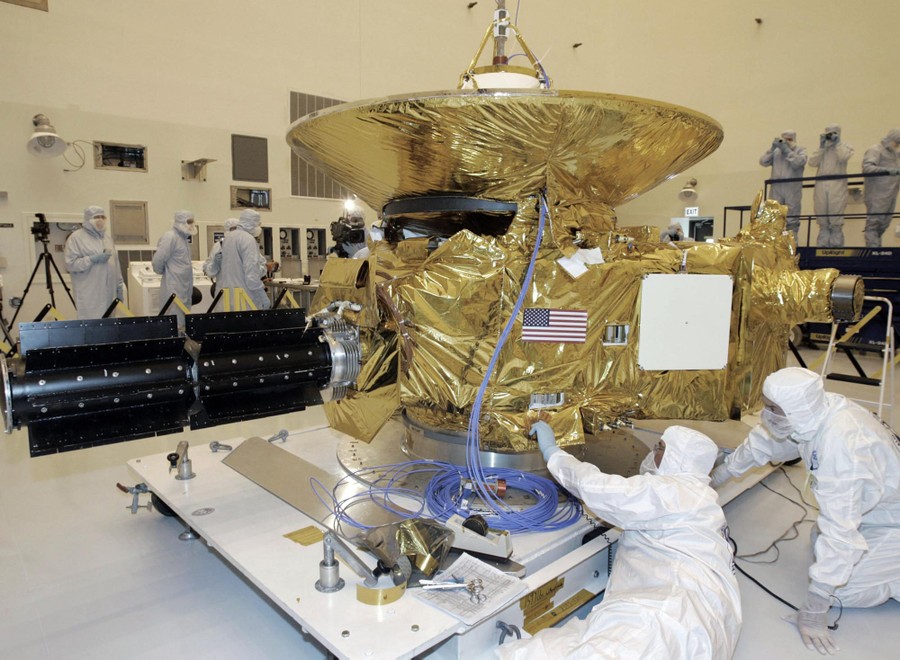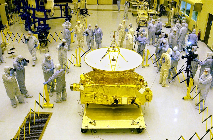 Read moreMembers of the media garbed in protective uniforms view NASA's New Horizons spacecraft on November 4, 2005, in the Payload Hazardous Servicing Facility at Kennedy Space Center. #