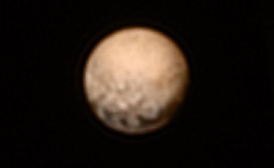 Read moreThis color version of a New Horizons Long Range Reconnaissance Imager (LORRI) picture of Pluto taken July 3, 2015, was created by adding color data from the Ralph instrument gathered earlier in the mission. The LORRI image was taken from a range of 7.8 million miles (12.5 million kilometers.) #