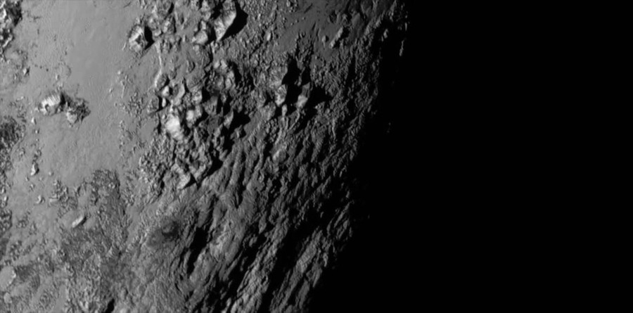 Read moreNew close-up images of a region near Pluto’s equator reveal a giant surprise: a range of youthful mountains rising as high as 11,000 feet (3,500 meters) above the surface of the icy body. The mountains likely formed no more than 100 million years ago -- mere youngsters relative to the 4.56-billion-year age of the solar system -- and may still be in the process of building, says Jeff Moore of New Horizons’ Geology, Geophysics and Imaging Team (GGI). That suggests the close-up region, which covers less than one percent of Pluto’s surface, may still be geologically active today. Moore and his colleagues base the youthful age estimate on the lack of craters in this scene. Like the rest of Pluto, this region would presumably have been pummeled by space debris for billions of years and would have once been heavily cratered -- unless recent activity had given the region a facelift, erasing those pockmarks. “This is one of the youngest surfaces we’ve ever seen in the solar system,” says Moore. Unlike the icy moons of giant planets, Pluto cannot be heated by gravitational interactions with a much larger planetary body. Some other process must be generating the mountainous landscape. “This may cause us to rethink what powers geological activity on many other icy worlds,” says GGI deputy team leader John Spencer of the Southwest Research Institute in Boulder, Colorado, The mountains are probably composed of Pluto’s water-ice “bedrock.” Although methane and nitrogen ice covers much of the surface of Pluto, these materials are not strong enough to build the mountains. Instead, a stiffer material, most likely water-ice, created the peaks. “At Pluto’s temperatures, water-ice behaves more like rock,” said deputy GGI lead Bill McKinnon of Washington University, St. Louis. The close-up image was taken about 1.5 hours before New Horizons closest approach to Pluto, when the craft was 478,000 miles (770,000 kilometers) from the surface of the planet. The image easily resolves structures smaller than a mile across. #