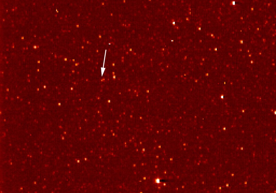 Read moreA white arrow marks Pluto in this New Horizons Long Range Reconnaissance Imager (LORRI) picture taken on September 21, 2006. Seen at a distance of about 4.2 billion kilometers (2.6 billion miles) from the spacecraft, Pluto is little more than a faint point of light among a dense field of stars. Mission scientists knew they had Pluto in their sights when LORRI detected an unresolved “point” in Pluto's predicted position, moving at the planet's expected motion across the constellation of Sagittarius near the plane of the Milky Way galaxy. #