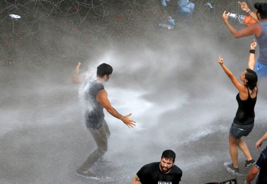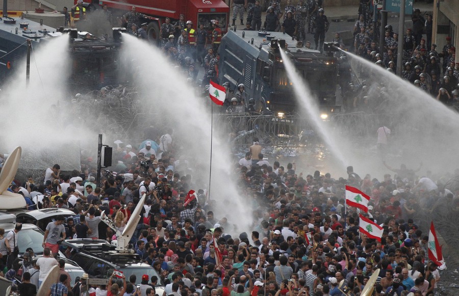 Read moreLebanese protesters are sprayed with water during a protest against corruption and against the government’s failure to resolve a crisis over rubbish disposal, near the government palace in Beirut on August 23, 2015. #