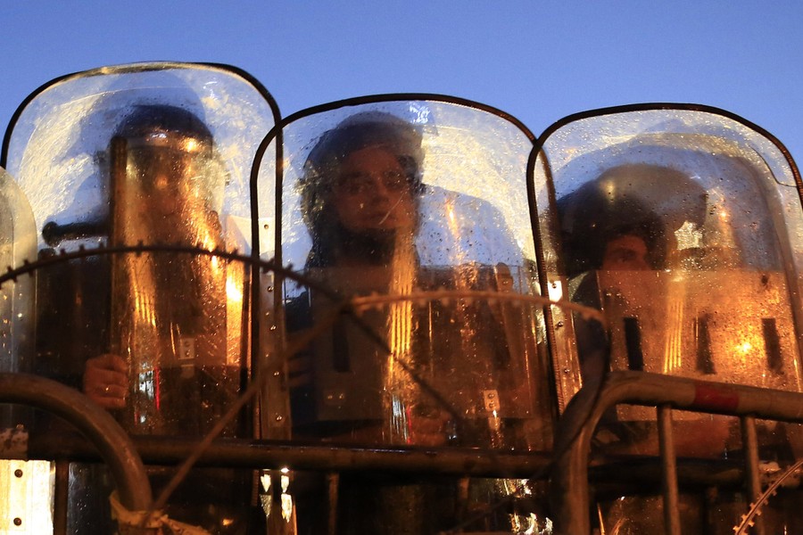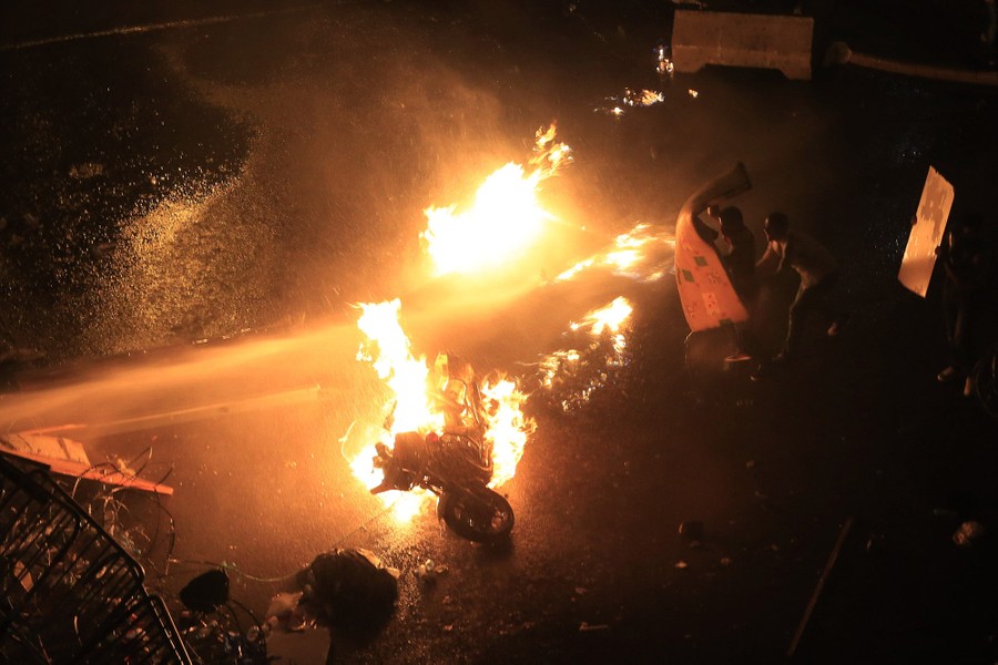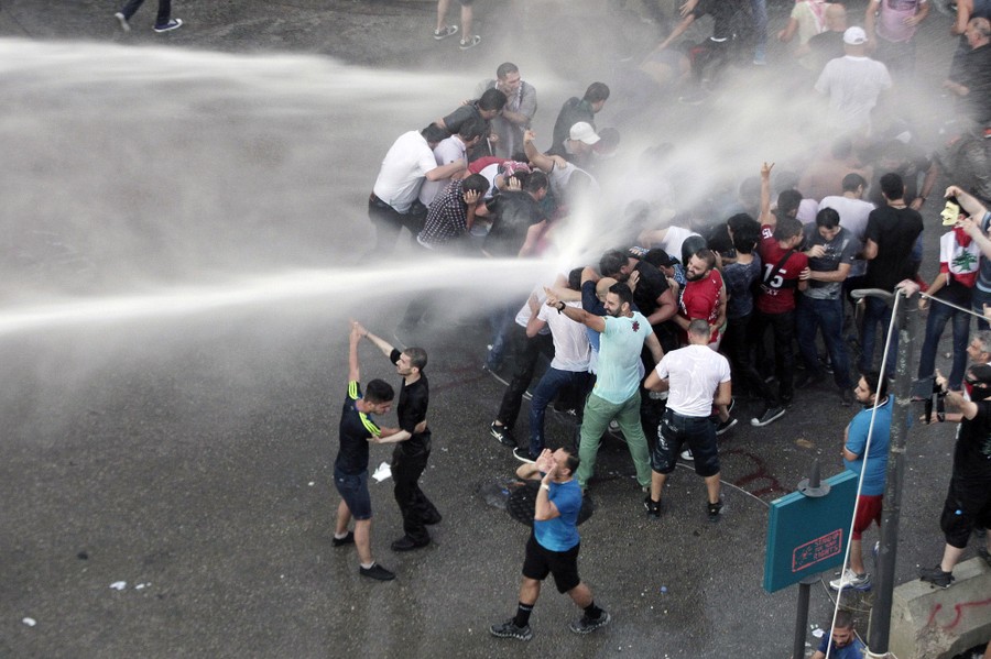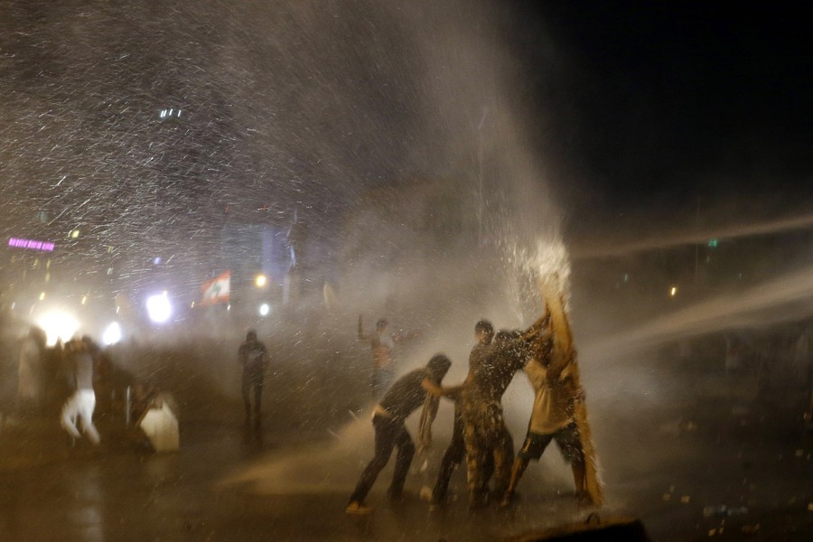 Read moreLebanese activists hold up a makeshift shield as they are sprayed by riot police using water cannons during a protest against the Lebanese government and an ongoing trash crisis in downtown Beirut, Lebanon, on August 23, 2015. #