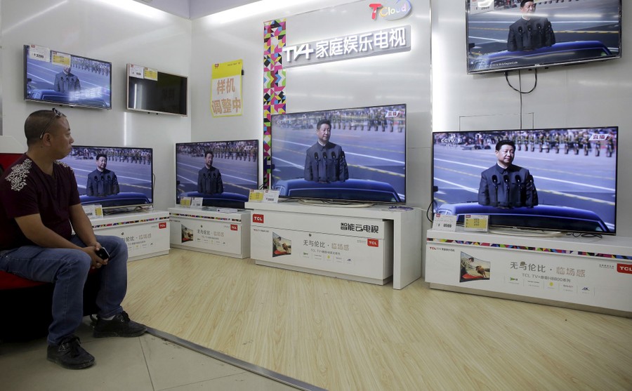 Read moreA man watches televisions, showing a live broadcast of China’s President Xi Jinping inspecting the army during a military parade, at a home appliances store in Wuhan, Hubei province, China, on September 3, 2015. #