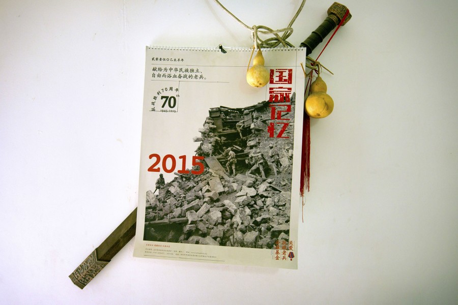 Read moreA calendar commemorating the 70th anniversary of the end of World War II hangs on the wall of the Beijing apartment of veteran nurse Zhang Cuiping on July 23, 2015. Formal 70th-anniversary commemorations begin Wednesday with a ceremony at the Great Hall of the People to honor veterans—at least those whose service has been officially recognized. #