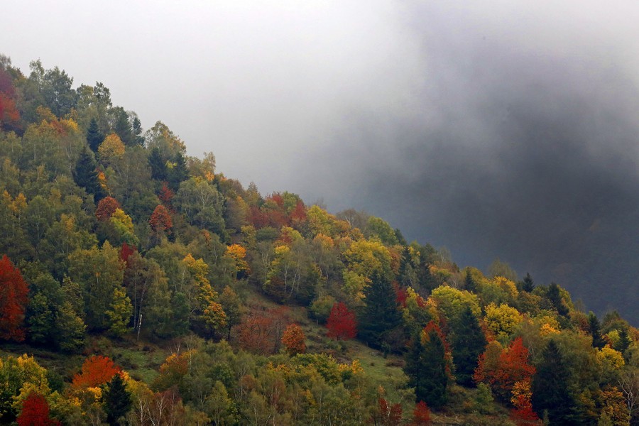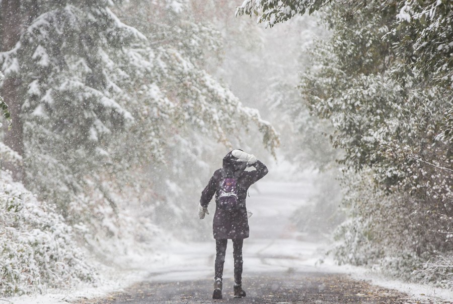Read moreA woman walks through an early snowfall in the forest on the Grosser Feldberg mountain in the Taunus region near Frankfurt am Main, Germany, on October 15, 2015. #