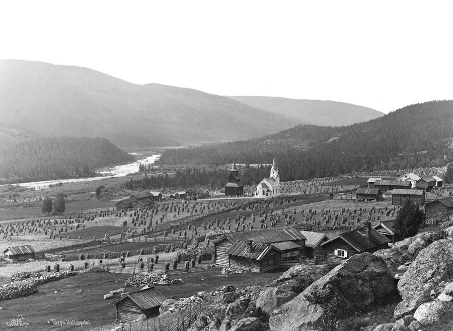 Read moreTorpo, municipality of Ål, Buskerud, seen in 1890, and again (click to fade) in 2004. The older photograph shows a typical landscape from the era of manual tools. Out in the field, the many poles laden with drying sheaves of corn are visible. Today most of the farmer’s tasks are done by machinery, and the use of resources has changed drastically. [Click the image to view transition.] #