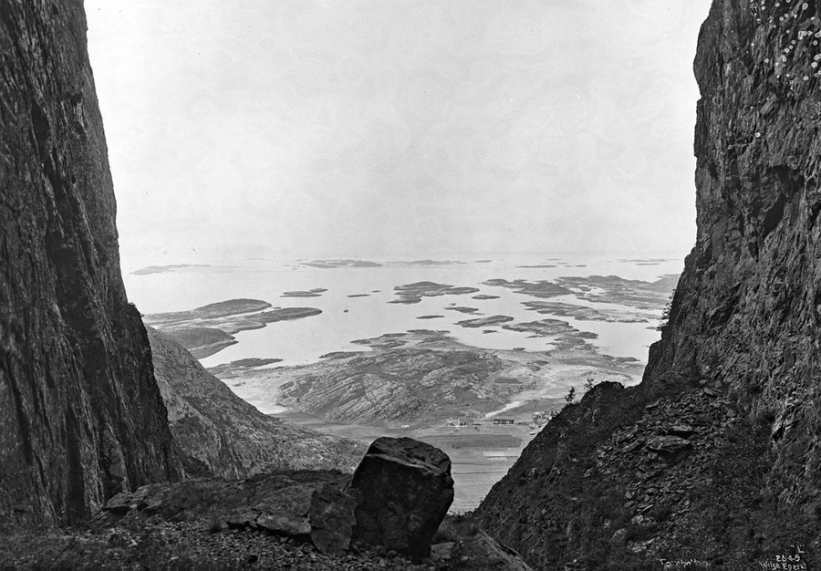 Read moreA view of islands from the hole in Torghatten, a mountain with a natural tunnel in its center, near Brønnøy-municipality Nordland, seen in 1889, and again (click to fade) in 2014. [Click the image to view transition.] #