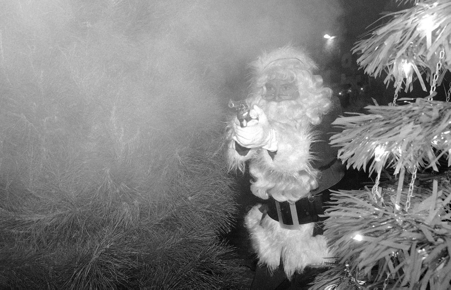 Read moreWilliam Shatner, masquerading as a Santa, fires a round at an escaping culprit during taping on November 23, 1983, in the garment district of Los Angeles for an upcoming episode of “T.J. Hooker.” #