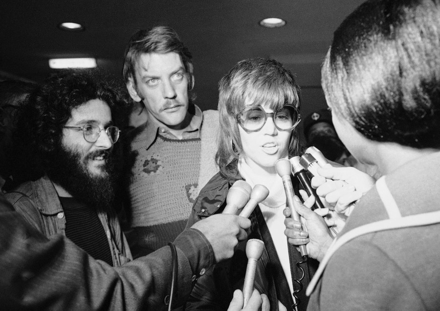 Read moreActress Jane Fonda and actor Donald Sutherland talk to reporters at the Los Angeles airport on November 23, 1971, before departing on a tour to entertain troops in Hawaii, Japan, Guam, and the Philippines. #