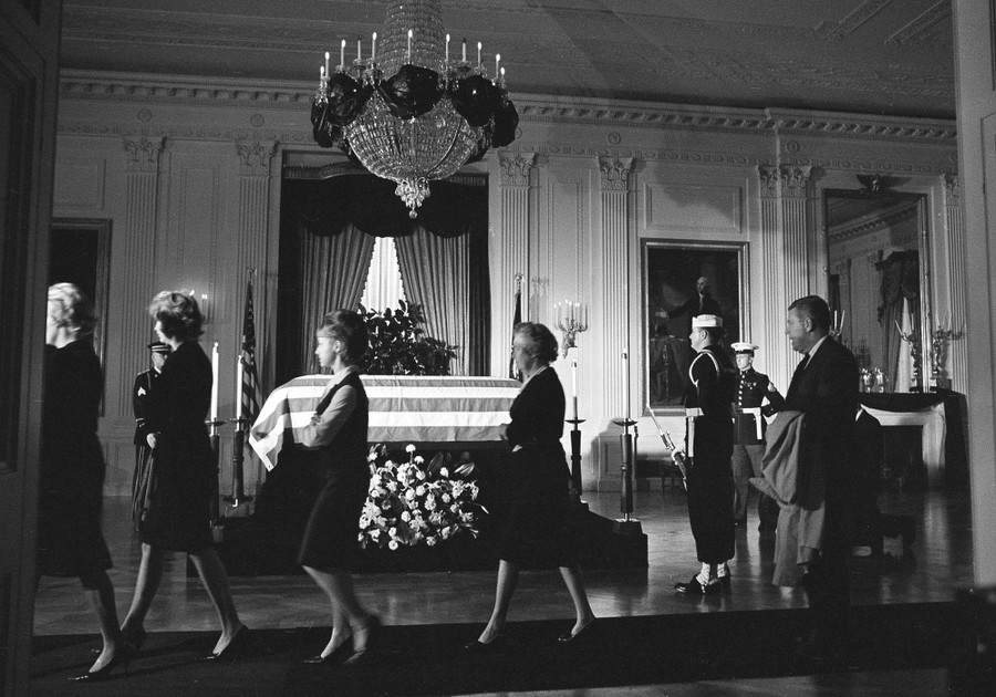 Read moreMembers of the White House staff file past the body of John F. Kennedy, lying in repose in a closed, flag-draped coffin in the historic East Room of the White House in Washington, DC, on November 23, 1963. #
