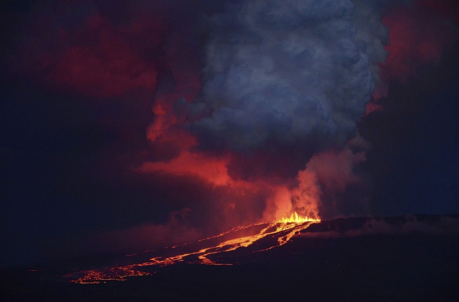 Read moreThe Wolf volcano spews smoke and lava on Isabela Island, in this May 25, 2015 photograph provided by the Galapagos National Park. A volcano perched atop one of Ecuador's Galapagos Islands erupted in the early hours of May 25, local authorities said, potentially threatening a unique species of pink iguanas. #