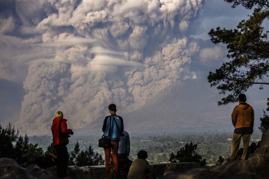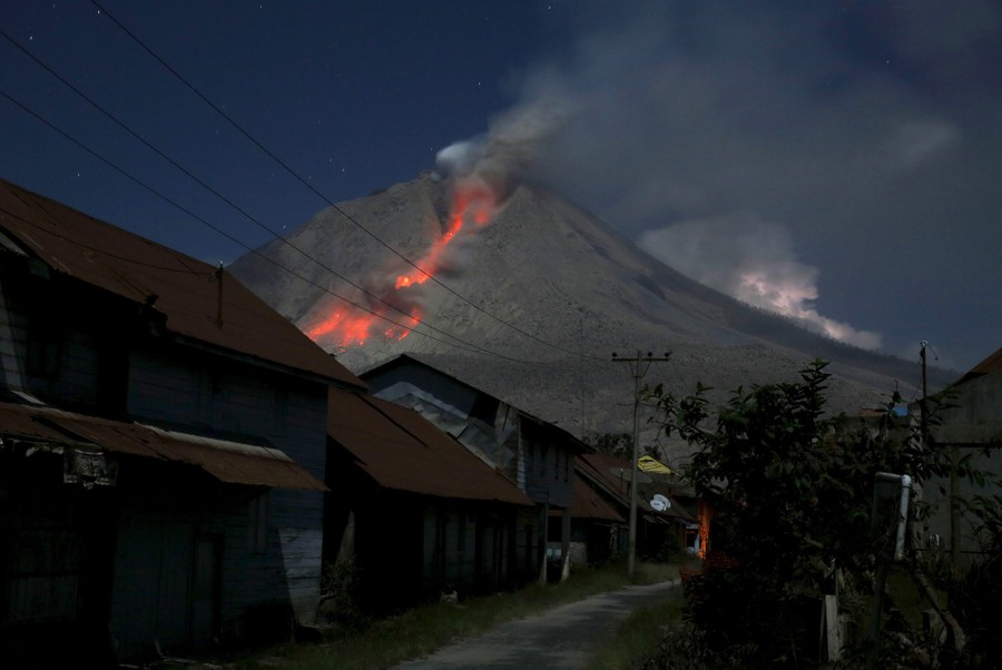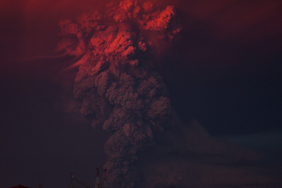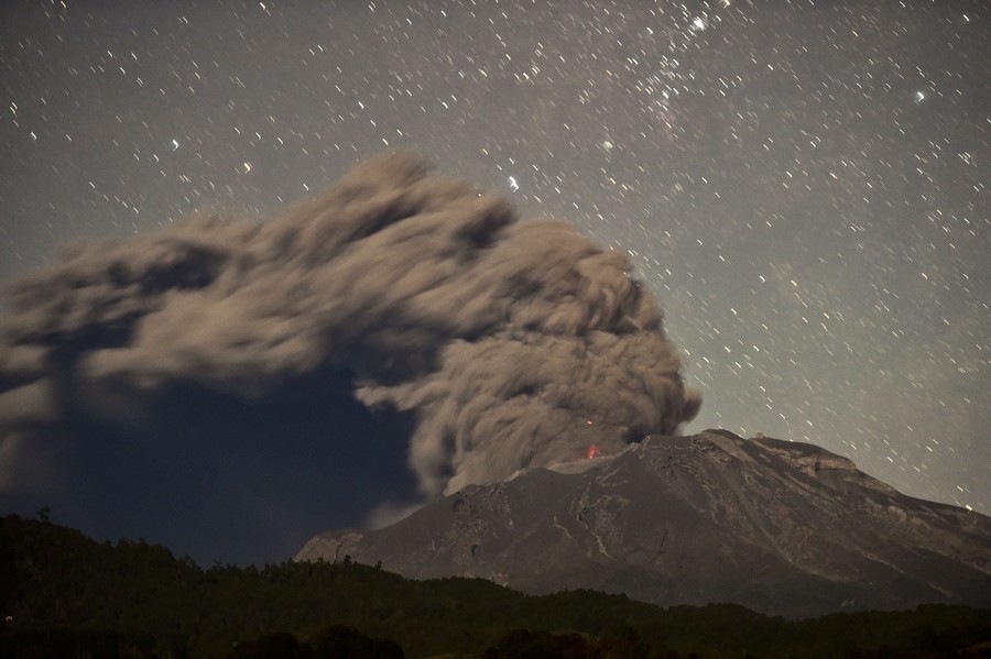 Read moreAsh spews from Mount Sinabung during an eruption as seen from Beras Tepu village in North Sumatra province, Indonesia, on June 29, 2015. More than 10,000 people from 12 villages, who were living around the slopes of Mount Sinabung, left their homes and moved to refugee camps, local media reported. #