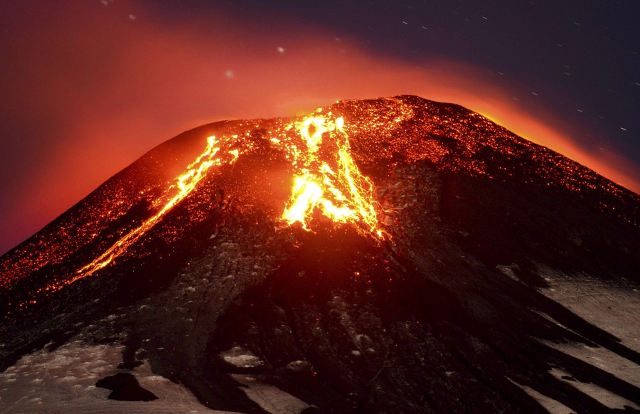 Once again, it has been a particularly eventful year for the world's volcanoes. Out of an estimated 1,500 active volcanoes, 50 or so erupt every year, spewing steam, ash, toxic gases, and lava. In 2015, erupting volcanoes included Mount Etna in Italy, Wolf volcano in the Galapagos Islands, Cotopaxi in Ecuador, Villarrica in Chile, Hunga Tonga-Hunga Ha'apai in Tonga, Mount Sinabung in Indonesia, Piton de la Fournaise on Réunion Island, Kilauea on Hawaii, Momotombo in Nicaragua, Colima in Mexico, and Calbuco in Chile. Collected below are scenes from the wide variety of volcanic activity on Earth over the past year.