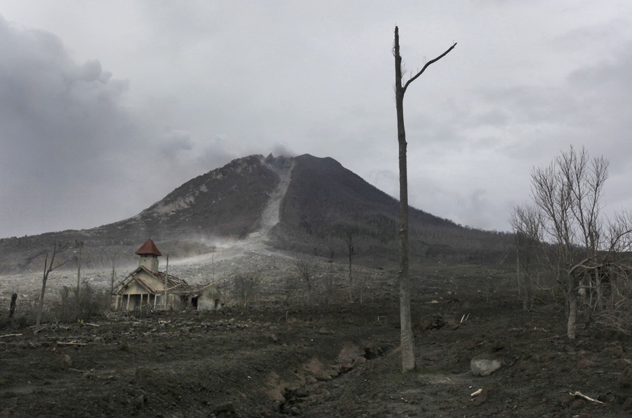 Read moreA church is dwarfed by Mount Sinabung at the abandoned village of Simacem, North Sumatra, Indonesia, on November 16, 2015. The village is located within an area which, following the eruption of the volcano, has been declared too dangerous to inhabit, forcing its residents to abandon their homes. #