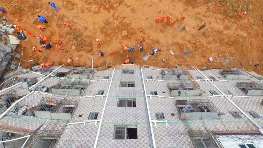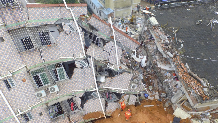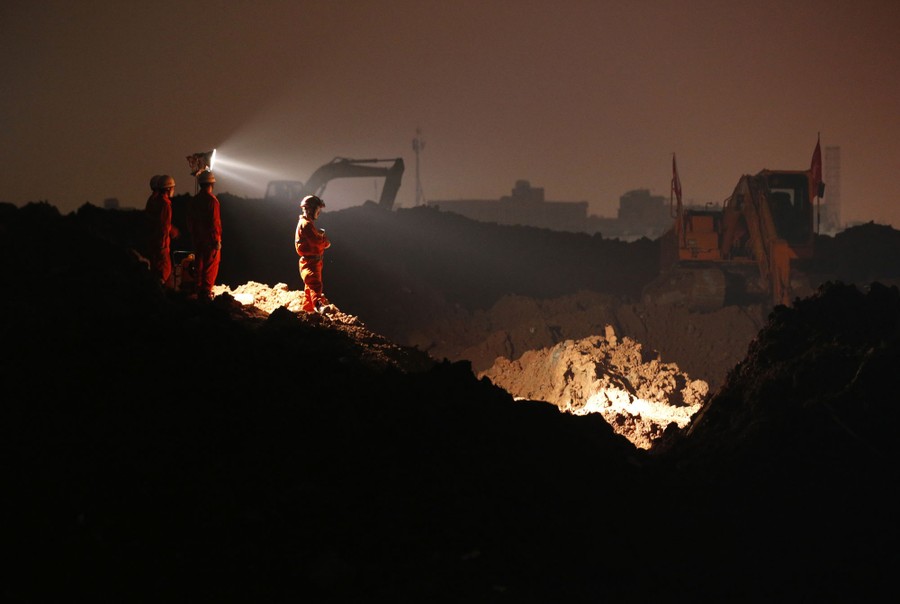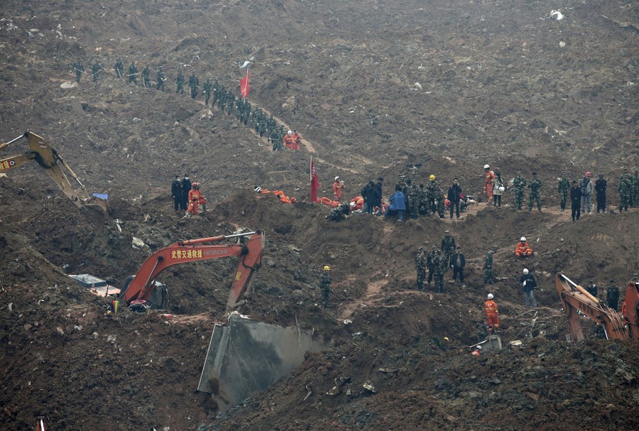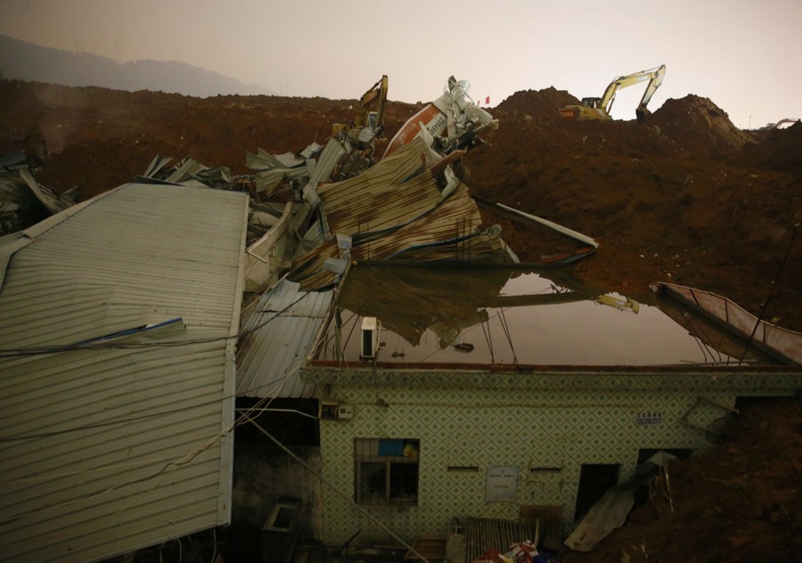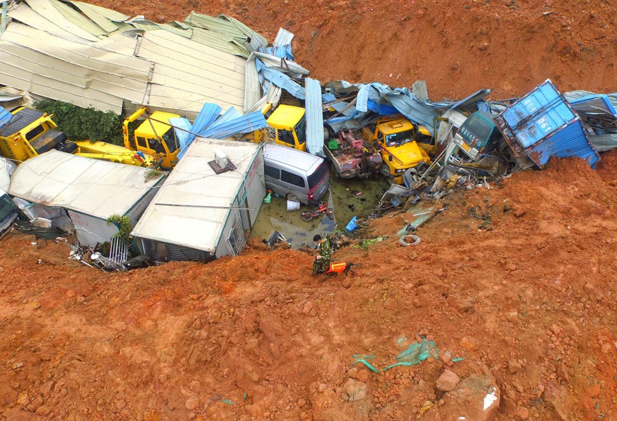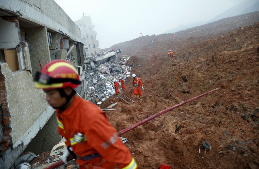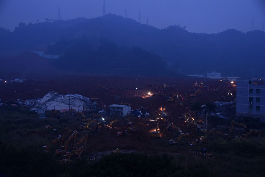 On Sunday, an enormous pile of excavated soil and other construction waste crashed down on an industrial park in Shenzhen, China, in a landslide burying dozens of buildings, and leaving more than 90 people listed as missing. Hundreds of rescue workers arrived to search for survivors, reportedly finding at least seven so far. Local media reported that the massive pile of construction debris had been closed earlier this year, but that illegal dumping continued for many months.