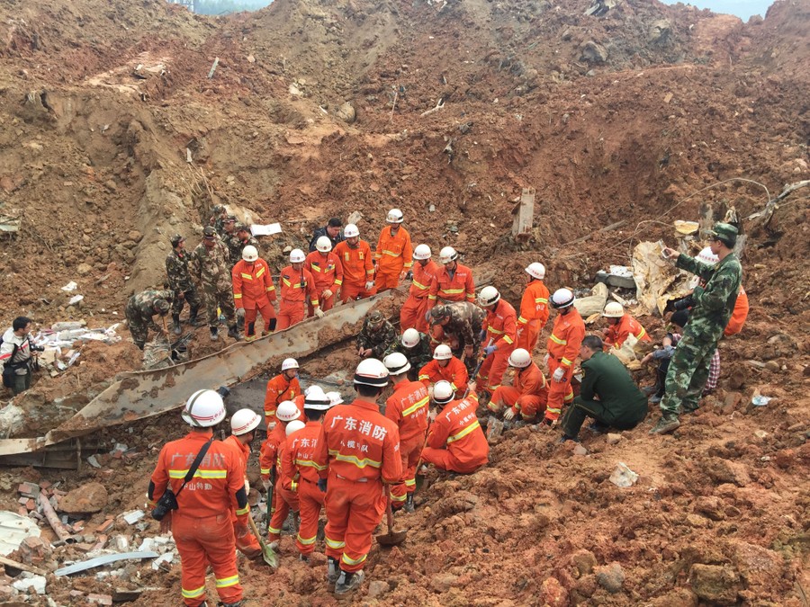 Read moreFirefighters search for survivors near a damaged building at the site of a landslide that hit an industrial park in Shenzhen, Guangdong, China, December 20, 2015. #