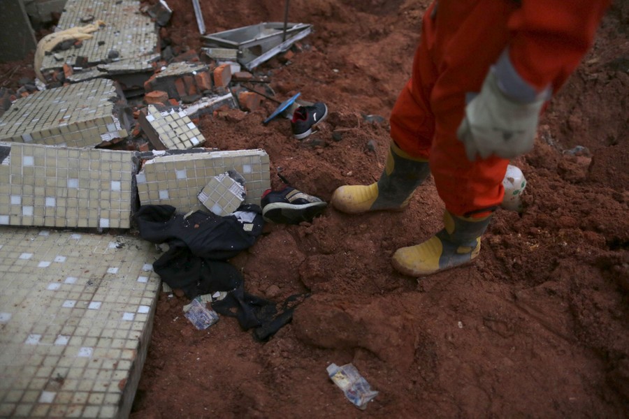 Read moreA pair of shoes and other belongings sit near a damaged building, as rescuers search for survivors at the site of a landslide in Shenzhen, China, on December 20, 2015. #