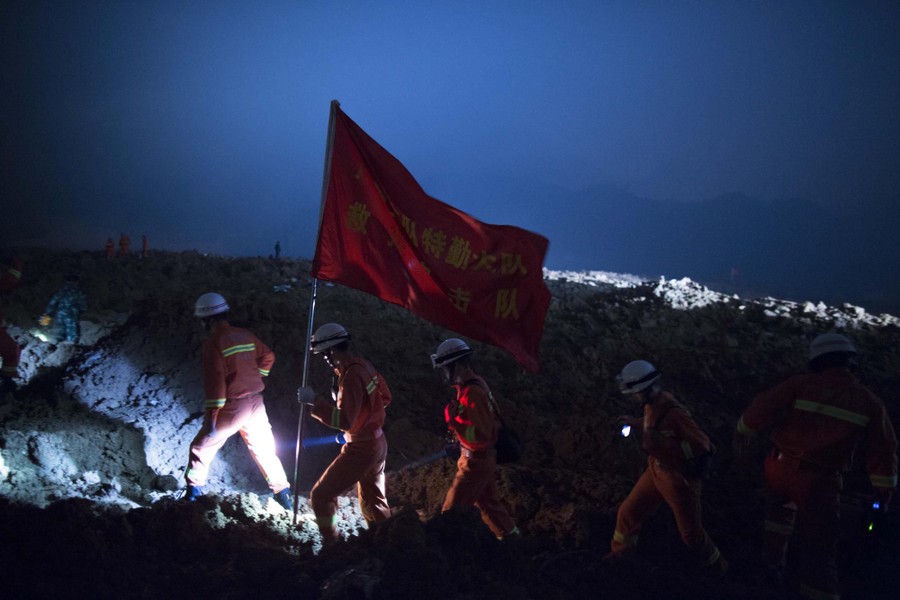 Read moreFirefighters use flashlights to search for survivors among the rubble of collapsed buildings, after a landslide hit an industrial park in Shenzhen on December 20, 2015. #