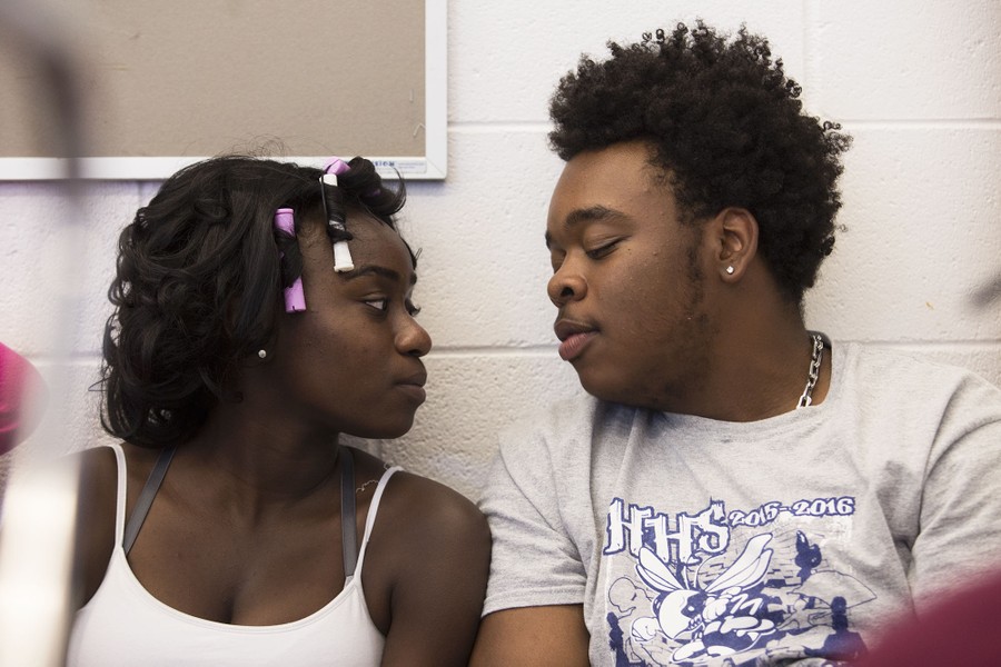 Read moreBryanna Williams, right, and Ashton Farrar, both juniors, share a moment of closeness. Farrar, a snare drummer, has been playing the drums since he was 5-years-old. “It helps me clear my head,” he said. Farrar wants to study biology when he graduates. Williams, one of the auxiliary dancers, wants to study art therapy and pursue a career in entertainment. #