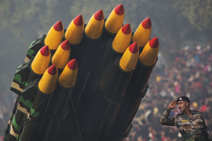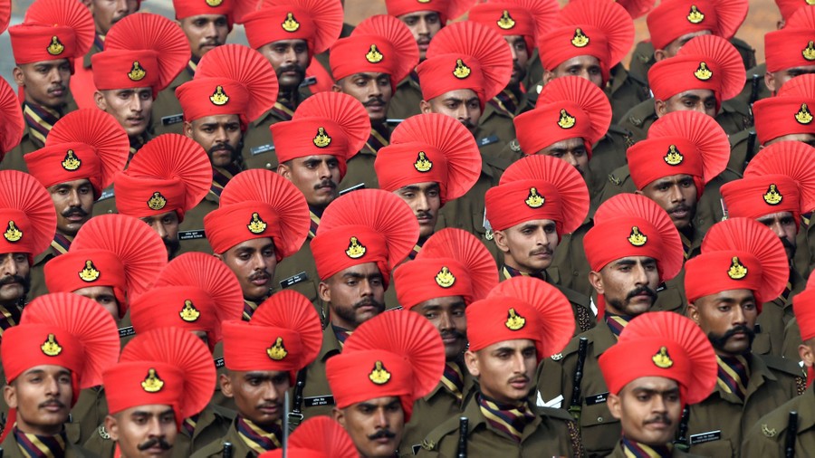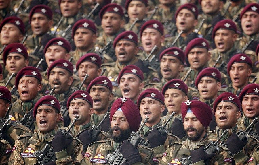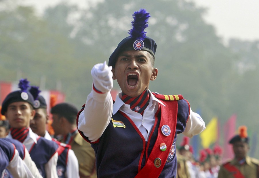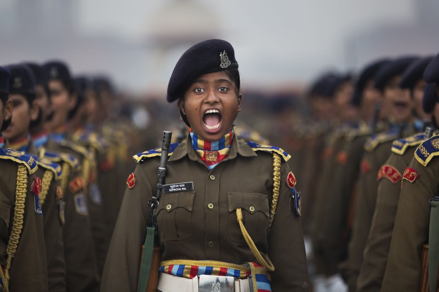 Read moreAn officer from the Indian Central Reserve Police Force shouts slogans during preparations for the Republic Day parade, near the Presidential Palace in New Delhi on January 12, 2016. #