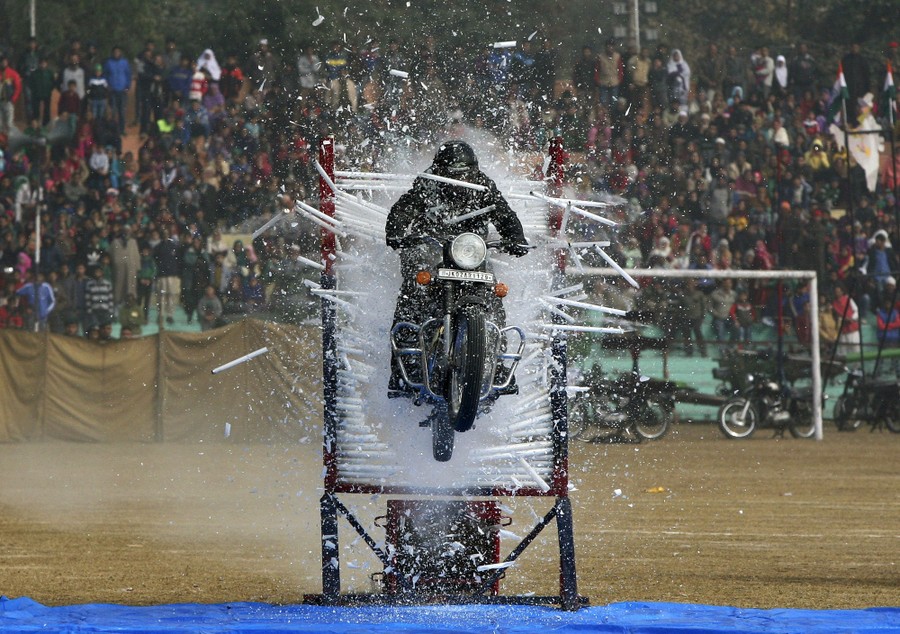 Read moreAn Indian army soldier performs “Malkhamb” (traditional Indian gymnastics) during an awareness program to attract youth in joining the armed forces on the eve of India's Republic Day at Gandhinagar, in the western state of Gujarat, India, on January 25, 2016. #