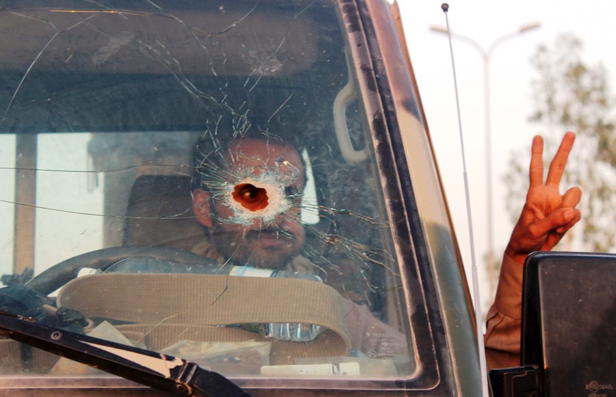 Read moreA Yemeni soldier, pictured through a vehicle's windscreen, which was damaged by a bullet, gestures out of the window, in Marib, Yemen, on October 15, 2015. Marib is a city that is heavily armed even by the standards of Yemen, where the ready availability of weapons helped start civil war and is now preventing anyone coming out on top. Yemenis often say there are three guns for every person, a boast that has become an urgent concern in a country where the United Nations says the humanitarian situation is "critical". #