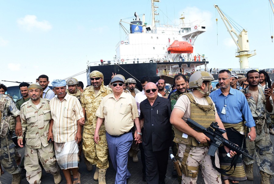 Read moreYemeni President Abed Rabbo Mansour Hadi, center, walks with officials as he tours in the port of Aden, Yemen, on January 4, 2016. Yemen's government declared a nighttime curfew in Aden in a bid to push back against recent incursions by al-Qaida and other Islamic militant groups, the city's governor said. #