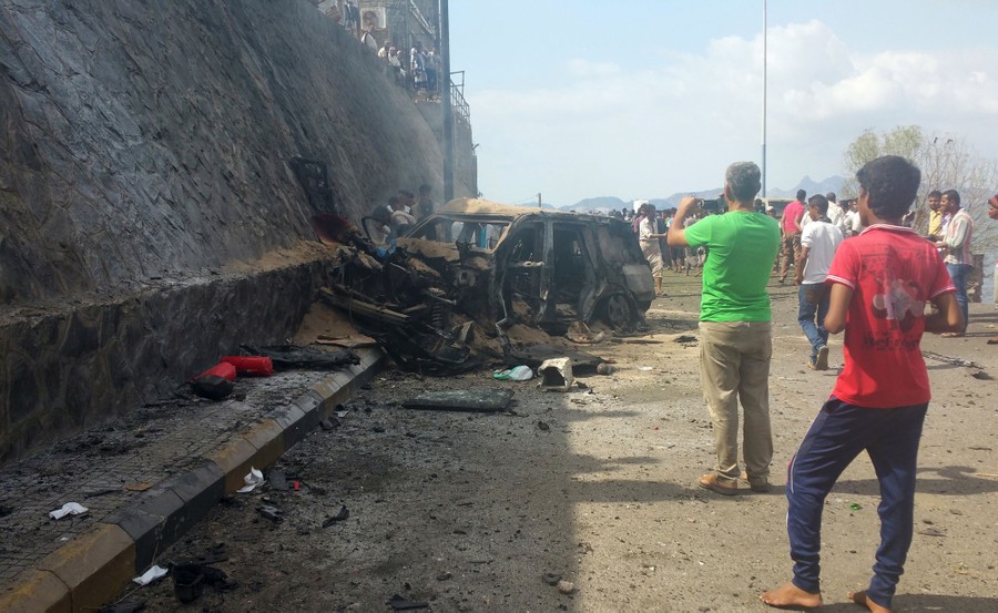 Read morePeople gather at the site of a car bomb attack that killed the governor of the port city of Aden on December 6, 2015. Jaafar Mohammed Saad was killed on Sunday when a suicide bomber rammed his car into the governor's convoy in the western part of Aden city, residents and a local official said. #