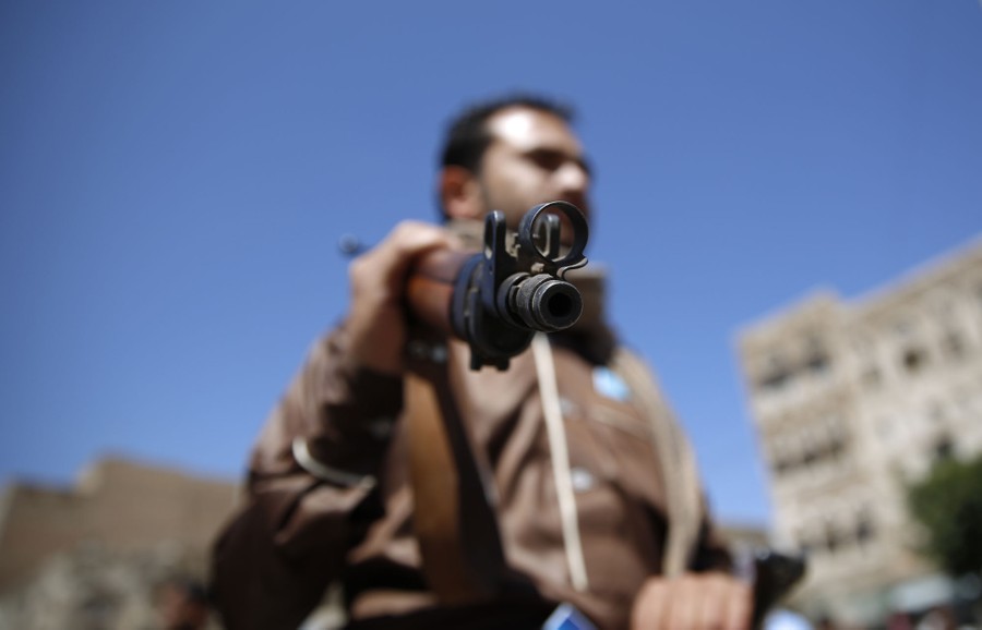 Read moreA Yemeni Shiite Houthi rebel stands next to a national flag in the capital Sanaa on September 21, 2015, during a ceremony marking a year since the city's seizure. #