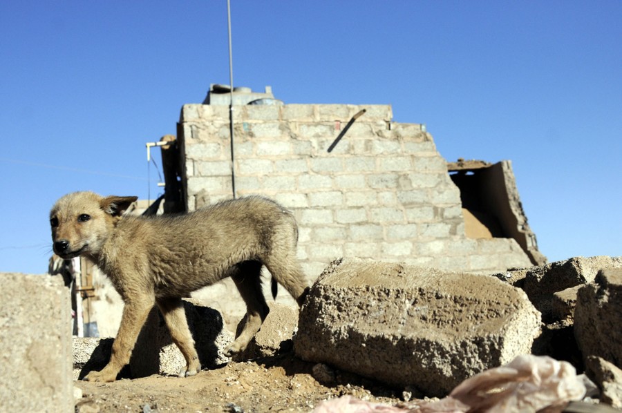 Read moreA dog walks on the rubble of a house after an air strike in Sanaa on December 29, 2015. The air strike, carried out by Saudi forces, hit a neighborhood here, killing four people and injuring four more. #